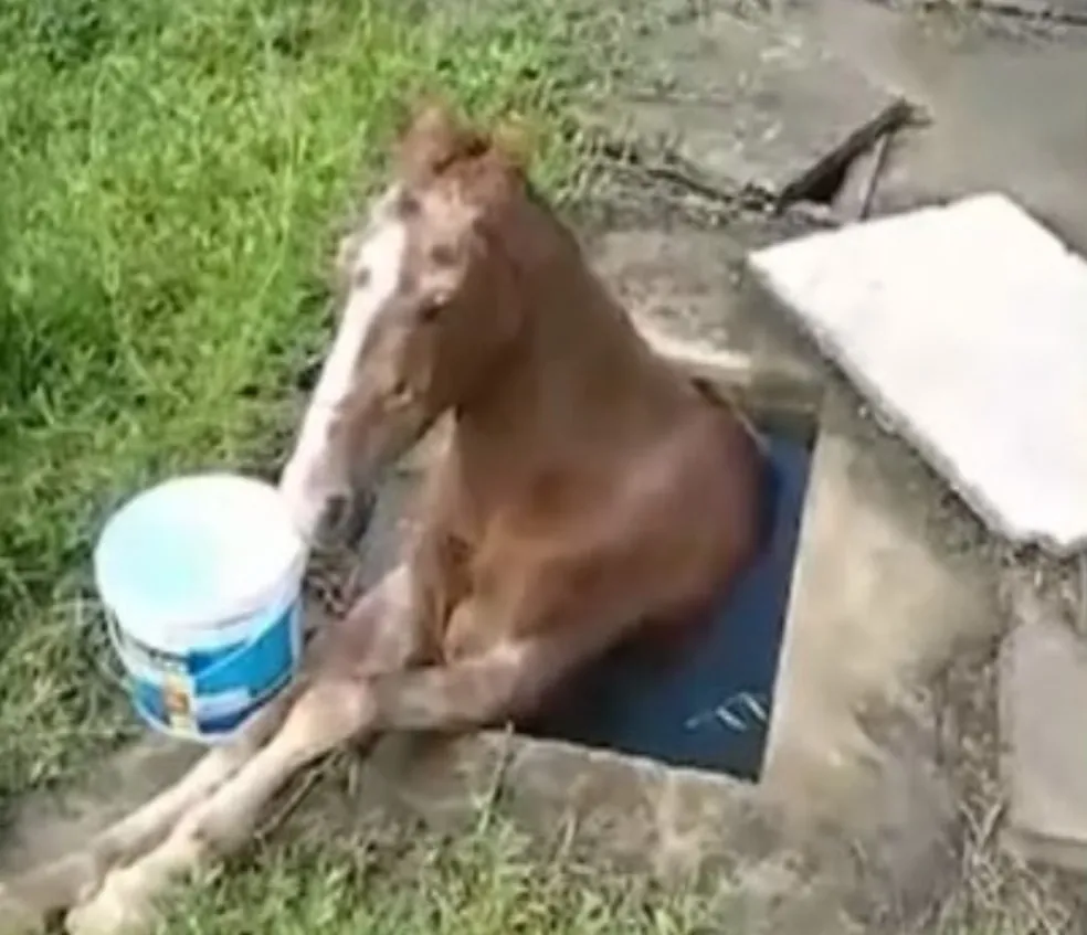 O fazendeiro foi rapidamente até o local do acidente, avaliou a situação, certificando-se de que o animal não estava machucado. Mas, pela dificuldade e alto custo para retirá-lo do fundo do poço, achou que não valia a pena investir na operação de resgate.
